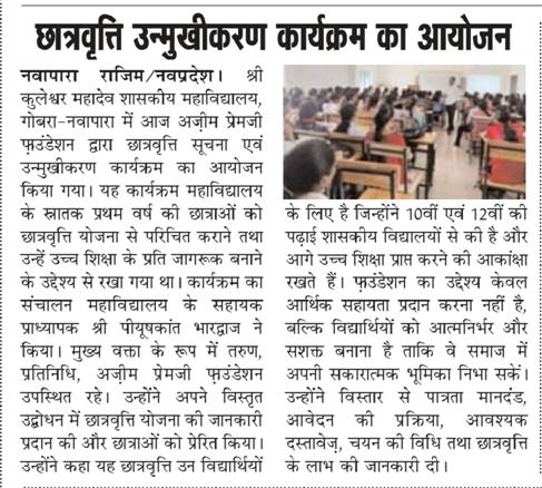 अतिथि व्याख्याता (विषय - रसायन शास्त्र ) मेरिट सूची (दावा आपत्ति हेतु)